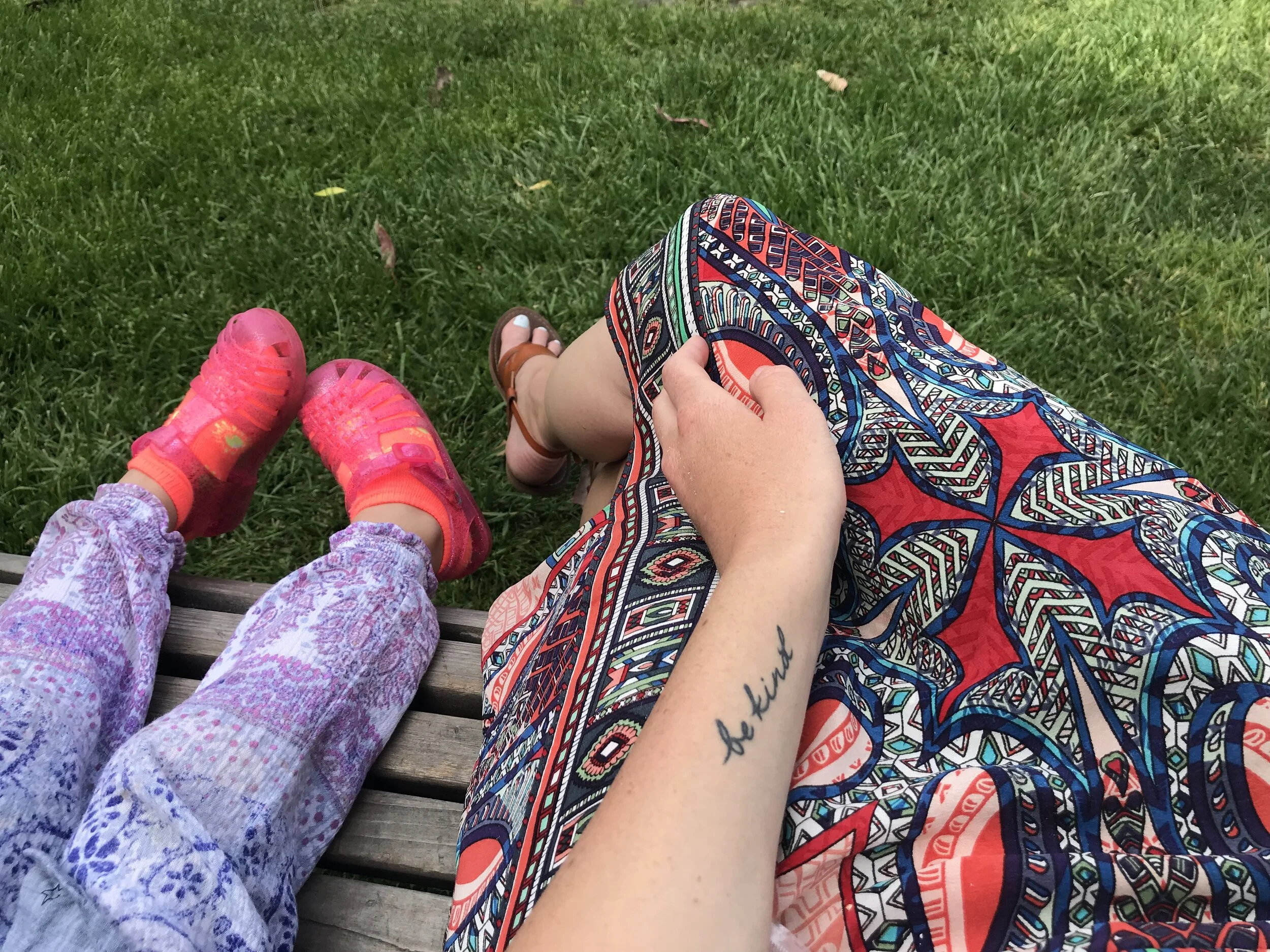 I have my own ongoing creative project, that for now exists entirely as an inner life I am cultivating. I protect that time, I guess its my form of “self care”. At the end of the day I will leave the house a mess and the sink full of dishes, to read, because I know that feeding my mind and my sense of meaning and purpose as a human is essential to my own well-being and ability to be the best mother I can be. While it is something that I do for myself, it is entirely entangled with my role as a mother—in how I choose what I read, how I relate to it, and how it shapes my world view. Our house is full of books and my children see me reading often, I do hope my habits influence their own.